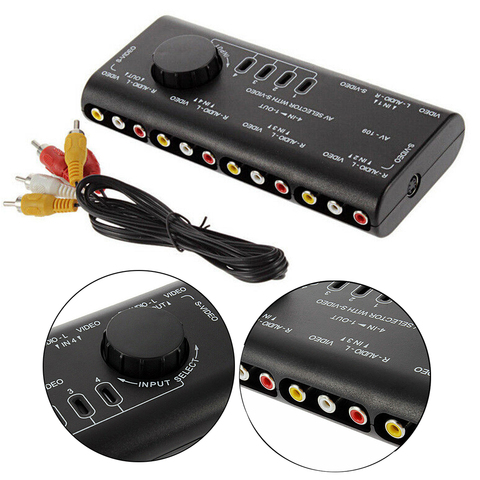 4 in 1 Out AVRCAスイッチボックスAVオーディオビデオ信号スイッチャースプリッターテレビDVD VCDTV用RCAケーブル付き4ウェイセレクター